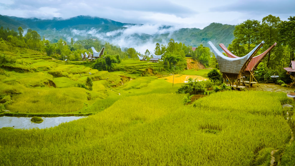 Visite des villages les plus caractéristiques du Pays Toraja avec ses maisons aux toits en forme de bateau ou de corne de buffle (les Tongkonan) : Lemo et ses tombes à flanc de falaise, Suaya et la tombe royale du 7e roi, Sanggala et son arbre-cimetière pour les bébés… Déjeuner en route. Après-midi, visite de Londa, la falaise constellée de statuettes (Tao-Tao) représentant les ancêtres qui protègent le village et de Kete-Kesu, un village dans la plus pure tradition. Nuit à Rantepao.