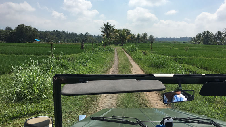 En décapotable, à 35 km/h de moyenne, cheveux au vent, par des routes minuscules. Pour découvrir d'autres paysages, des villages loin des bus et des camions ... Avant de retrouver les foyers touristiques majeurs de Bali...